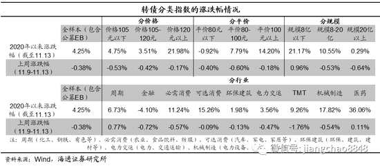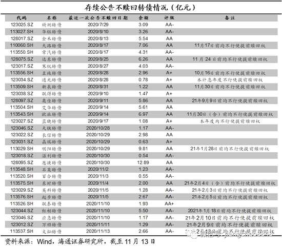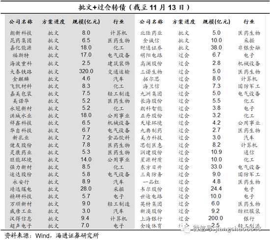 截至2020年11月13日,待發(fā)新券共4225.75億元,共173只(待發(fā)轉(zhuǎn)債詳見(jiàn)附表2)。其中批文+過(guò)會(huì)的轉(zhuǎn)債共991.61億元,54只。