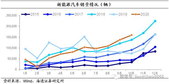 10月新能源乘用車(chē)市場(chǎng)持續(xù)向好。2020年 10月新能源汽車(chē)產(chǎn)銷(xiāo)預(yù)計(jì)分別完成 16.7萬(wàn)輛和 16.0萬(wàn)輛,同比分別增長(zhǎng)69.7%和 104.5%,環(huán)比分別增長(zhǎng)19.6%、13.9%。其中,新能源乘用車(chē)產(chǎn)銷(xiāo)完成15.5萬(wàn)輛和14.8萬(wàn)輛,同比分別增長(zhǎng)79.7%和113.3%;新能源商用車(chē)產(chǎn)銷(xiāo)預(yù)計(jì)分別完成1.2萬(wàn)輛、1.2萬(wàn)輛,同比分別增長(zhǎng)-2.9%和36.4%。
