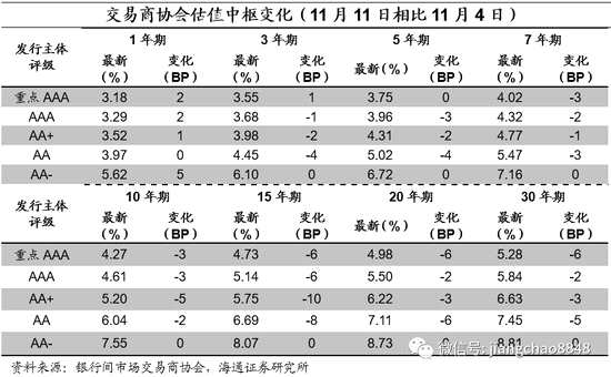 相比11月4日協(xié)會(huì)估值,本周(11月11日)中信用債估值收益率下行為主。