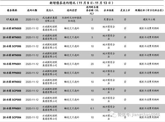 上周新增違約主體2家 ,為成龍建設(shè)集團(tuán)有限公司和永城煤電控股集團(tuán)有限公司。