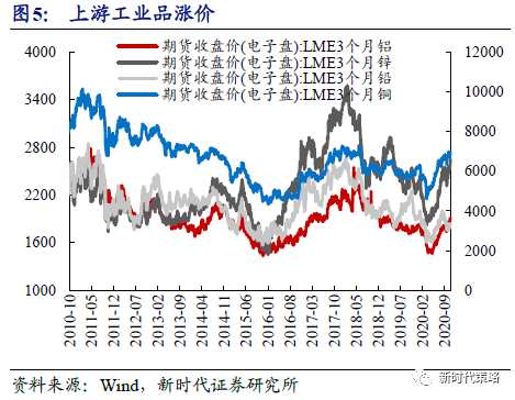 同時,大型發(fā)電集團日均耗煤量10月開始呈上升趨勢,工業(yè)品價格經(jīng)過一個月調整后也在10月份企穩(wěn),并重新開始回升。這些跡象也印證了工業(yè)生產(chǎn)需求在持續(xù)上漲,盡管數(shù)據(jù)可能會有月度波動,但經(jīng)濟始終是處于復蘇的通道中的。按照周期理論,本輪經(jīng)濟上行至少要持續(xù)到2021年中,目前時間上還遠遠不夠。