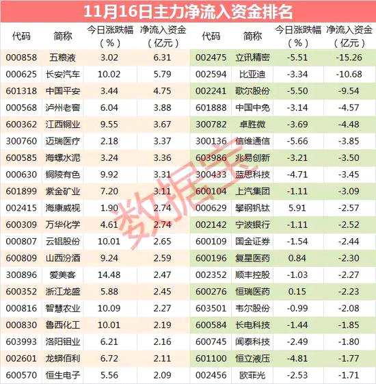 個(gè)股來看,共有57只個(gè)股主力資金凈流入超億元,五糧液主力資金凈流入6.31億元,凈流入資金居首;長安汽車、中國平安緊隨其后,全天凈流入資金分別為5.79億元、4.75億元;全天凈流入資金較多的還有瀘州老窖、江西銅業(yè)等。股價(jià)表現(xiàn)方面,凈流入資金超億元個(gè)股今日平均上漲6%,表現(xiàn)強(qiáng)于大盤,漲停的有長安汽車、云鋁股份、智慧農(nóng)業(yè)等個(gè)股。