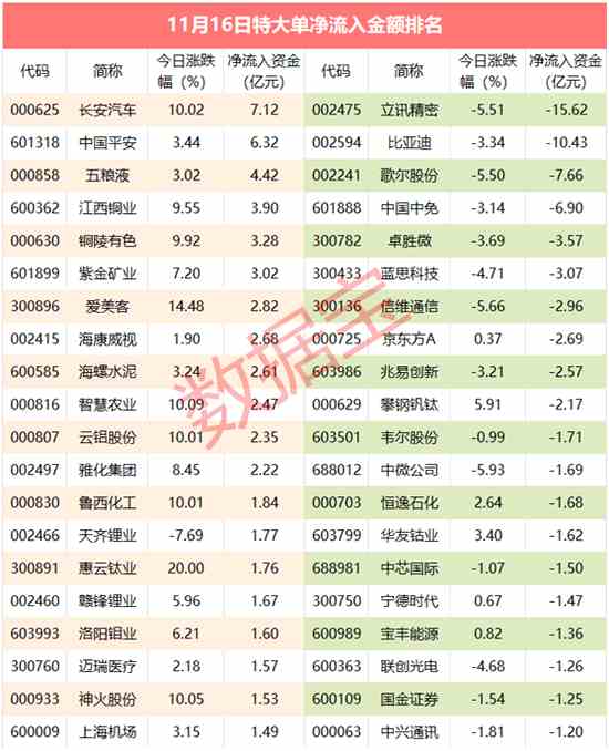 今日有4只個(gè)股特大單凈流出超5億元,消費(fèi)電子龍頭立訊精密全天特大單凈流出15.62億元居首。緊隨其后是比亞迪和歌爾股份,全天特大單凈流出分別為10.43億元和7.66億元。