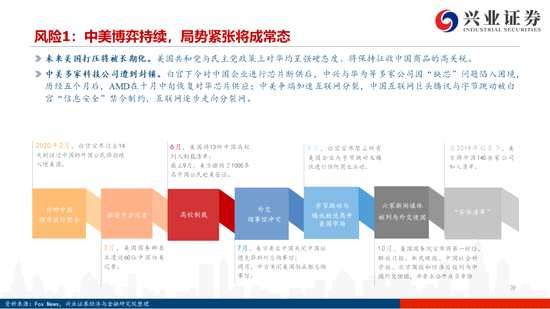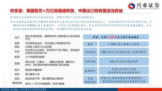 快變量:國(guó)內(nèi)外投資和消費(fèi)動(dòng)能穩(wěn)步接棒,經(jīng)濟(jì)復(fù)蘇后勁十足。國(guó)內(nèi)方面,2020年地產(chǎn)基建持續(xù)發(fā)力、實(shí)現(xiàn)逆周期調(diào)節(jié),明年全球經(jīng)濟(jì)復(fù)蘇環(huán)境下,制造業(yè)投資有望繼續(xù)回暖;海外供應(yīng)鏈?zhǔn)芤咔橛绊懟謴?fù)較慢,促使國(guó)內(nèi)出口持續(xù)超預(yù)期。向后看,內(nèi)需有望置換外需,類比今年商品類的報(bào)復(fù)性消費(fèi),期待2021年服務(wù)類的報(bào)復(fù)性消費(fèi)。國(guó)外方面,待美國(guó)大選落定、新總統(tǒng)任期開啟后,美國(guó)有望出臺(tái)大規(guī)?;ㄓ?jì)劃,在海外供應(yīng)鏈復(fù)工羸弱的情況下,國(guó)外周期品供需錯(cuò)位,國(guó)內(nèi)周期出口產(chǎn)業(yè)鏈有望受益。中美博弈大方向下,有望出現(xiàn)階段性改善。