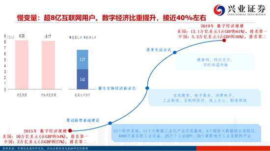 慢變量:促進(jìn)內(nèi)循環(huán)與供給側(cè)改革相結(jié)合,長(zhǎng)期看好中國(guó)內(nèi)需市場(chǎng)潛力和產(chǎn)業(yè)升級(jí)。十九屆五中全會(huì)公報(bào)提出將“堅(jiān)持?jǐn)U大內(nèi)需”和“深化供給側(cè)結(jié)構(gòu)性改革”有機(jī)結(jié)合,基于要素市場(chǎng)化改革角度:一方面,堅(jiān)持傳統(tǒng)要素(土地和勞動(dòng)力)改革,加速新型城鎮(zhèn)化建設(shè),2035年中國(guó)人均GDP有望達(dá)到中等發(fā)達(dá)國(guó)家水平,內(nèi)需市場(chǎng)潛力無限;另一方面,加快新型要素(數(shù)據(jù))建設(shè),提高數(shù)字經(jīng)濟(jì)比重,推動(dòng)中國(guó)步入創(chuàng)新型國(guó)家前列,實(shí)現(xiàn)關(guān)鍵高技術(shù)突破和自主可控,相關(guān)科技成長(zhǎng)產(chǎn)業(yè)具備長(zhǎng)期投資機(jī)會(huì)。
