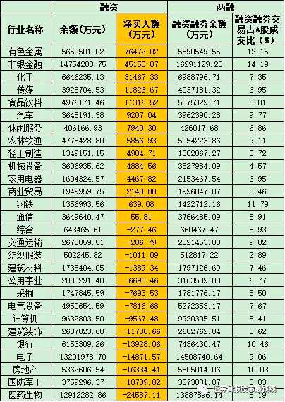 六、截至11月18日申萬級一級行業(yè)兩融交易情況