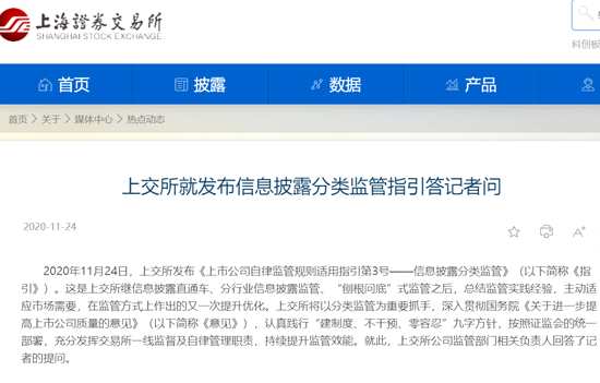 11月24日,上交所發(fā)布《上市公司自律監(jiān)管規(guī)則適用指引第3號—信息披露分類監(jiān)管》(以下簡稱《指引》)。據(jù)悉,該《指引》自發(fā)布之日起施行,適用于滬市上市公司。