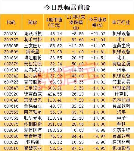 11月25日,兩市股指高開低走,午后下探加速,滬指收盤跌逾1%,創(chuàng)業(yè)板指下跌2.2%。保險、石油板塊逆勢上揚,其余板塊大面積走低,共計逾20股跌停,高位熱門股是今日跌停股的主要特征。