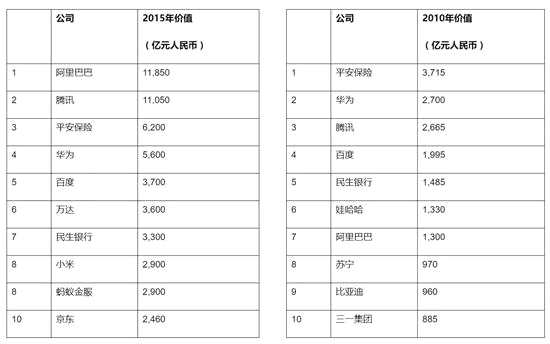 前十名企業(yè)總價值是10年前10倍