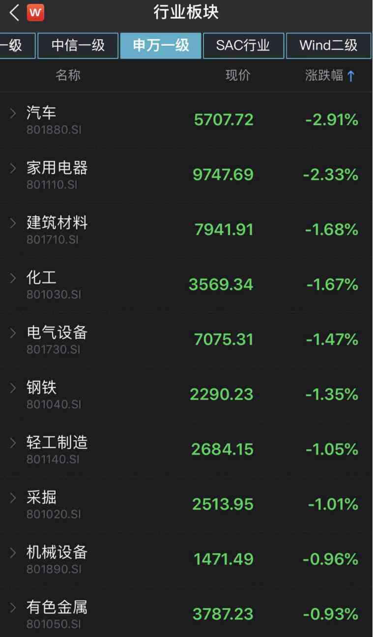 截至午盤(pán),申萬(wàn)一級(jí)28個(gè)行業(yè)板塊中,公用事業(yè)、銀行、休閑服務(wù)、非銀金融等板塊漲幅居前;汽車(chē)、家用電器概念重挫,半日跌逾2%,建筑材料、化工、電氣設(shè)備、鋼鐵等板塊跌幅居前。