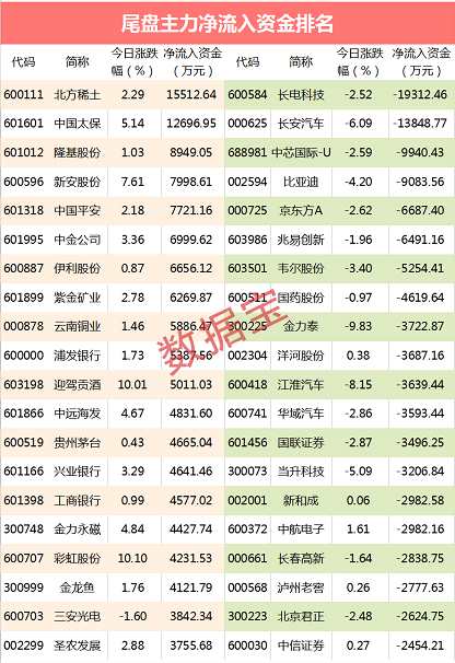 長電科技和長安汽車尾盤流出金額超億元。其中芯片封測龍頭長電科技流出金額達1.93億元,尾盤股價跳水,收跌2.52%。中芯國際-U、比亞迪尾盤流出資金超9000萬元。