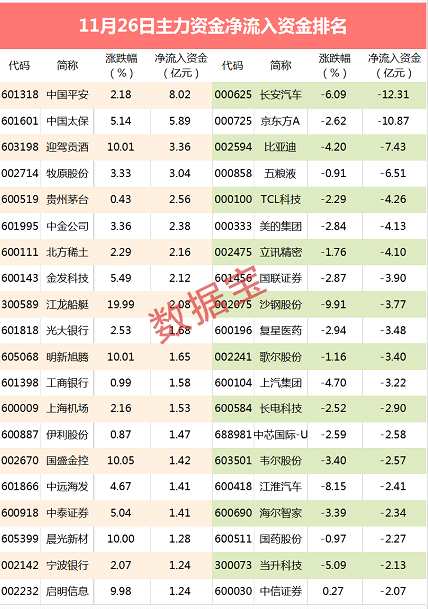 資金搶籌保險股,中國平安、中國太保兩只保險股分別流入8億元和5.89億元。