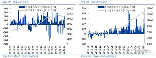 海外方面,拜登確認當選,疫苗研發(fā)進展順利以及RCEP正式簽署等利好持續(xù)釋放,有望提振市場風險偏好并進一步強化全球經(jīng)濟復蘇預期。首先,近期拜登確認當選、疫苗研發(fā)進展順利,已帶動美股市場大漲、全球風險偏好提升,對國內(nèi)風險偏好也有拉動。與此同時,海外風險偏好回升之下,外資也在大幅回流,11月至今已流入近530億。其次,RCEP正式簽署,將為中國以及全球經(jīng)濟復蘇和未來增長續(xù)添動能。