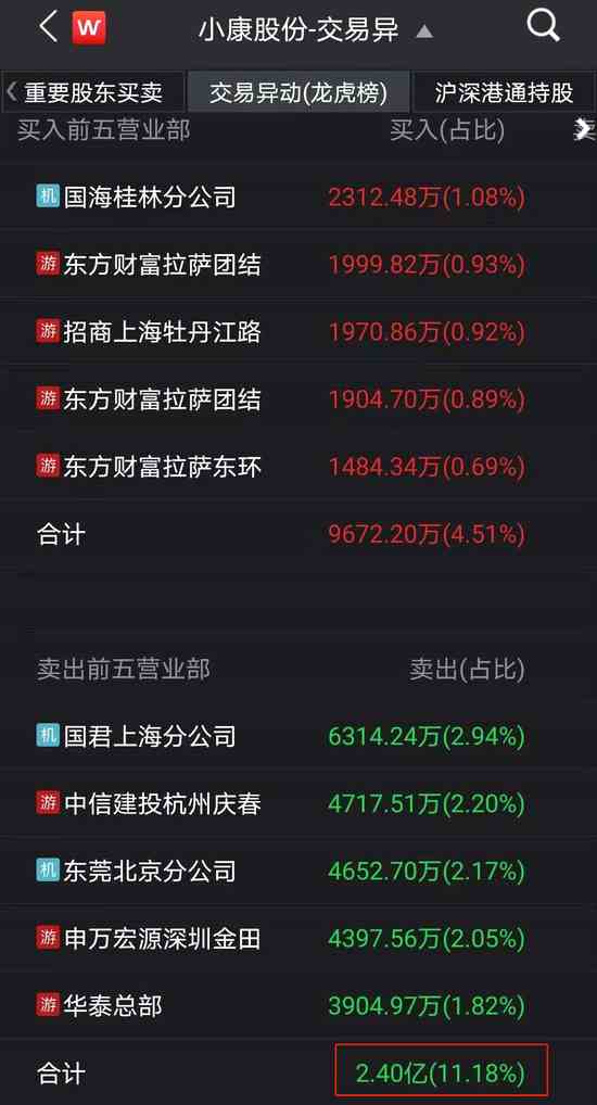 從12月3日批露的2日的龍虎榜來看,小康股份在2日被凈賣出1.43億,其中賣出前五應(yīng)業(yè)務(wù)合計賣出2.4億。