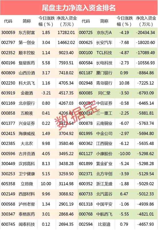 4只個股尾盤流出資金超億元,京東方A大幅流出2.04億元,TCL科技尾盤資金流出也高達1.71億元。此外,長安汽車、長電科技流出金額均超億元。