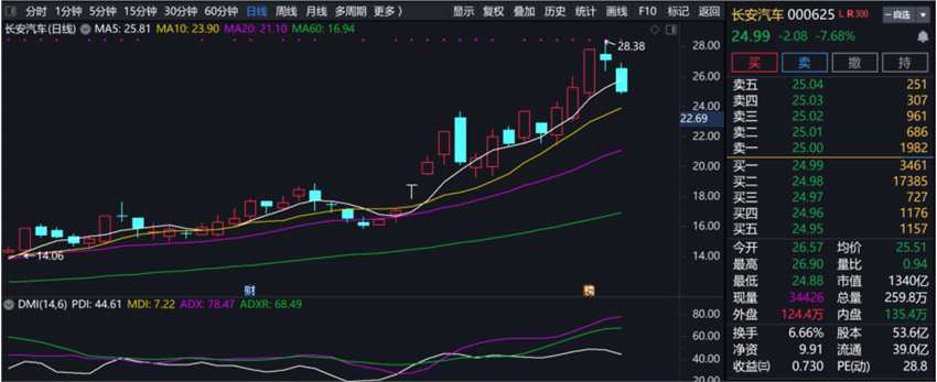 長(zhǎng)安汽車(chē)12月3日大跌7.68%。
