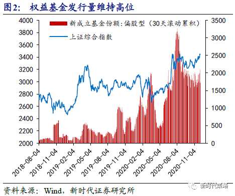 ?。?)增量資金未來(lái)1個(gè)季度內(nèi)大概率有一次密集進(jìn)場(chǎng)。2020年相比2016-2019年,股市最大的變化是出現(xiàn)了增量資金。而且這一次增量資金進(jìn)來(lái)更多依賴(lài)公募權(quán)益基金(凈增加了1.2萬(wàn)億),個(gè)人投資者開(kāi)戶(hù)和轉(zhuǎn)賬數(shù)據(jù)雖然也有增加,但幅度較小(只凈增加了2600億)。從時(shí)間上看,主要是2-3月、6-8月密集流入。