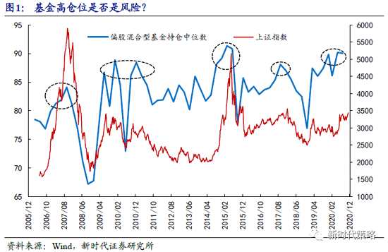 ?。?)基金高倉(cāng)位是否是風(fēng)險(xiǎn)?從近期投資者對(duì)未來(lái)市場(chǎng)展望來(lái)看,投資者對(duì)2021年上半年整體樂(lè)觀,短期的一致預(yù)期也偏樂(lè)觀,這一點(diǎn)從公募偏股混合型基金的持倉(cāng)比例也能夠看得到。部分博弈高手也開(kāi)始擔(dān)心過(guò)度一致預(yù)期、高倉(cāng)位、低估值板塊修復(fù)后的風(fēng)險(xiǎn)。