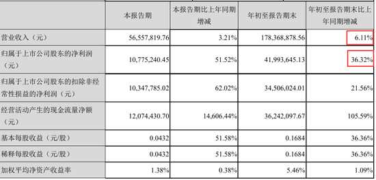 同時,公司業(yè)績也未見異常。三季報顯示,前三季度公司營業(yè)收入和凈利潤都分別增長6.11%和36.32%。