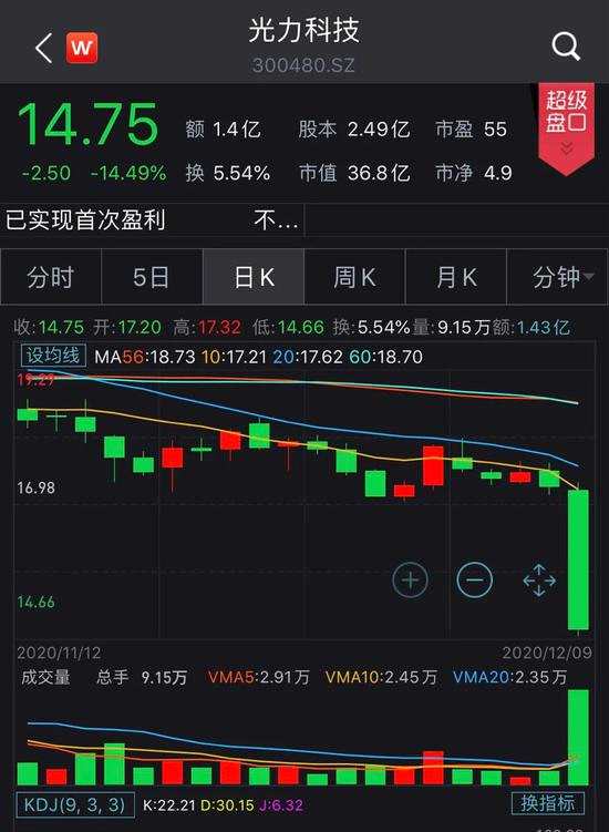 12月9日,光力科技突然閃崩,打破了原本緩慢的調(diào)整節(jié)奏。