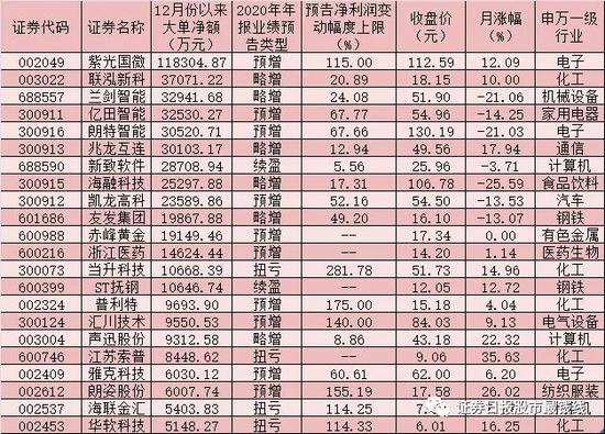 表:12月份以來(lái)獲超5000萬(wàn)元大單資金布局的年報(bào)業(yè)績(jī)預(yù)喜股