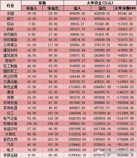 二、周三(12月9日)申萬(wàn)一級(jí)行業(yè)大單資金流向