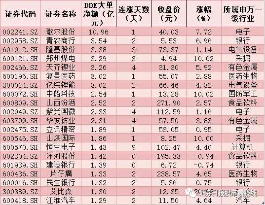 一、周三(12月9日)DDE大單資金凈買(mǎi)入TOP20
