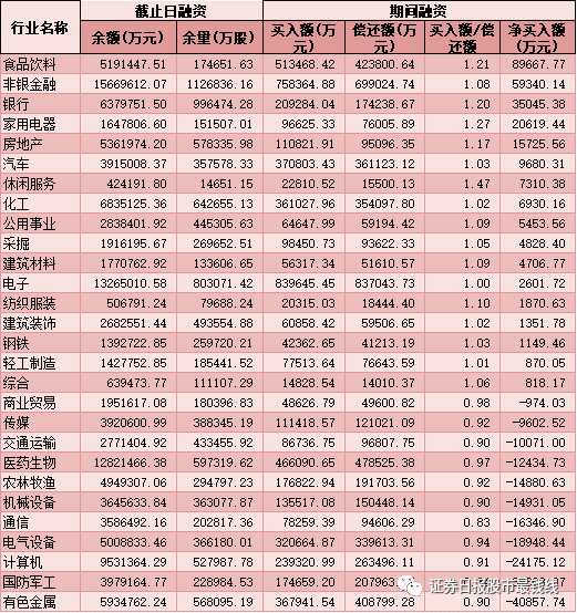 六、截至12月8日申萬(wàn)一級(jí)行業(yè)兩融交易情況
