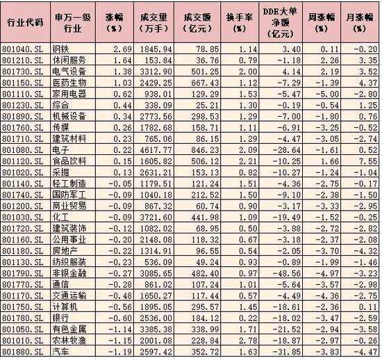表:12月10日申萬一級行業(yè)指數(shù)表現(xiàn)一覽