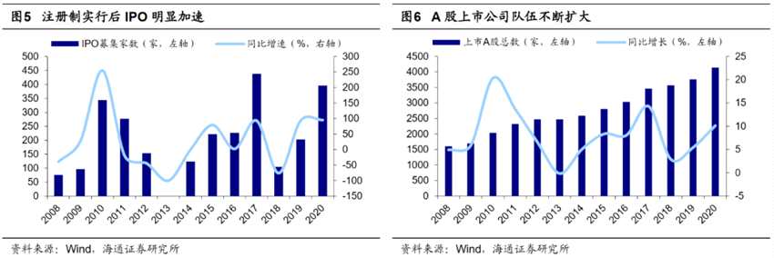 退市制度匹配注冊(cè)制,加快A股新陳代謝。科創(chuàng)板注冊(cè)制試點(diǎn)與創(chuàng)業(yè)板注冊(cè)制改革已經(jīng)順利實(shí)施,A股IPO明顯加速,2020年IPO數(shù)量達(dá)396家,同比大增95.1%。在此推動(dòng)下A股上市公司總數(shù)升至4140家,同比增長10.1%,明顯高于2005-2019年的復(fù)合增速7.5%,更要高于美股2005-2020的復(fù)合增速1.8%。同時(shí),截至2020/1/8 A股尚有280家公司已通過IPO審核但尚未發(fā)行,上市公司擴(kuò)容壓力較大。經(jīng)過一系列的試點(diǎn)與制度改革,全市場(chǎng)推行注冊(cè)制條件已經(jīng)逐步具備,“十四五”規(guī)劃建議明確要全面實(shí)行股票發(fā)行注冊(cè)制,建立常態(tài)化退市機(jī)制,提高直接融資比重。退市制度是注冊(cè)制實(shí)施的重要配套制度,有助于保障注冊(cè)制下市場(chǎng)生態(tài)能夠?qū)崿F(xiàn)優(yōu)勝劣汰的自我凈化,實(shí)現(xiàn)A股上市公司數(shù)量的動(dòng)態(tài)平衡,優(yōu)化資本市場(chǎng)的資源配置功能。