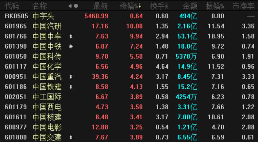 在白酒股回調(diào)之際,中字頭股有接棒領(lǐng)漲的趨勢。早盤,中字頭板塊指數(shù)略微低開后,一度放量急拉上漲逾1%,在創(chuàng)近2年來新高。中國中車、中國出版、中國汽研漲停,其中龍頭股中國中車連續(xù)2漲停,今年以來9個交易日7日上漲,累計漲幅高達(dá)43.69%,完全收復(fù)去年全年25.63%的跌幅?!?a href="http://m.xfjyyzc.com/gegu/688128/" target="_blank" title="中國電研(688128)股票分析,新聞,資金流向,財務(wù)數(shù)據(jù)" >中國電研(688128)、股吧】、中國化學(xué)、中國科傳等也紛紛大漲5%以上。