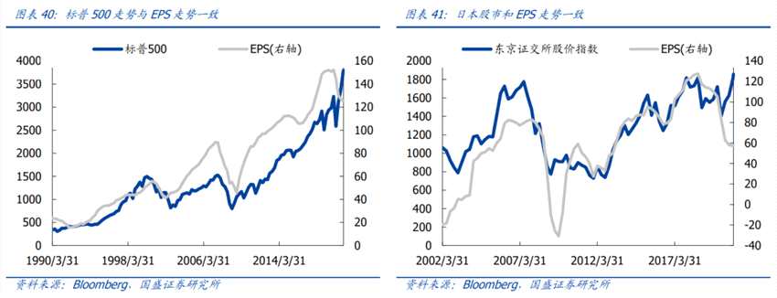 機(jī)構(gòu)化帶來定價(jià)體系由PE主導(dǎo)向EPS主導(dǎo)變遷,景氣越來越成為決定市場走勢的核心變量。參考美股和日股等市場,股市走勢由EPS主導(dǎo)。隨著估值波動收斂,基本面、景氣度越來越成為決定市場走勢的核心變量,未來景氣將比估值更重要。短期的高估值不代表跌,可以通過盈利增長消化;低估值不代表漲,還是要看景氣的趨勢。