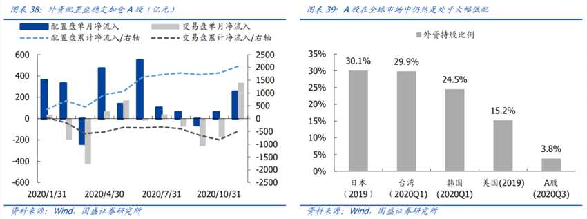 一是2017-2019年,外資成為A股市場最重要的增量資金。隨著陸港通開通和MSCI落地,境外資金入場明顯提速。近幾年北上年度凈流入在2000-3500億,截至2020年9月,外資占流通市值比例超過4.73%,成為A股市場第二大機(jī)構(gòu)投資者。