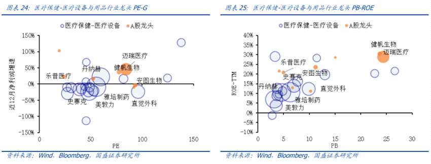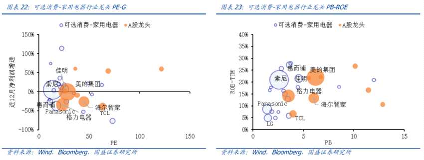 2)PE-G和PB-ROE下估值均合理的行業(yè)有:食品、食品零售、家庭與個人用品、家用電器、家用裝飾品、生物科技、醫(yī)療保健服務(wù)與技術(shù);