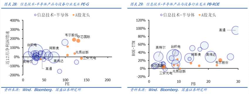 3)PE-G或PB-ROE下偏貴的行業(yè)有:通信設(shè)備、半導(dǎo)體產(chǎn)品與設(shè)備、電腦與外圍設(shè)備、軟件與服務(wù)。