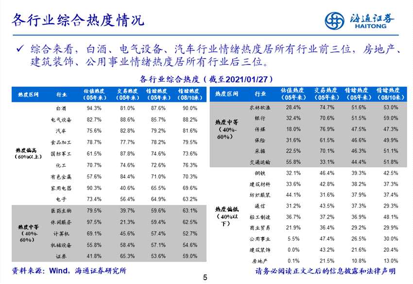 海通策略:白酒、電氣設(shè)備、汽車交易情緒熱度居所以行業(yè)前三位
