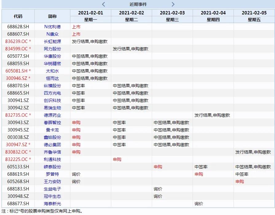 本周滬深兩市共計7只新股陸續(xù)展開發(fā)行,分別是鑫鉑股份、【春暉智控(300943)、股吧】、曼卡龍、德必集團(tuán)、嶸泰股份、羅普特、王力安防,投資者可按下表參與申購。