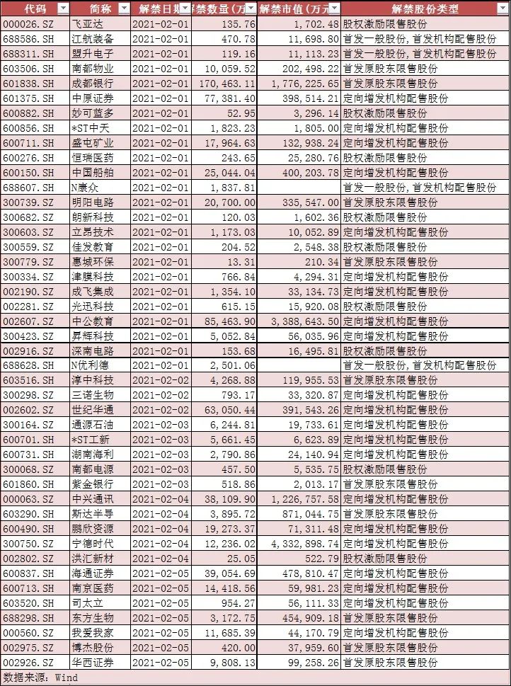 二月共有165支股票解禁,共解禁231.81億股,按1月29日收盤價計算,當(dāng)前解禁市值為5096.24億元,較上月3488.36億元的規(guī)模同比增長逾46%。