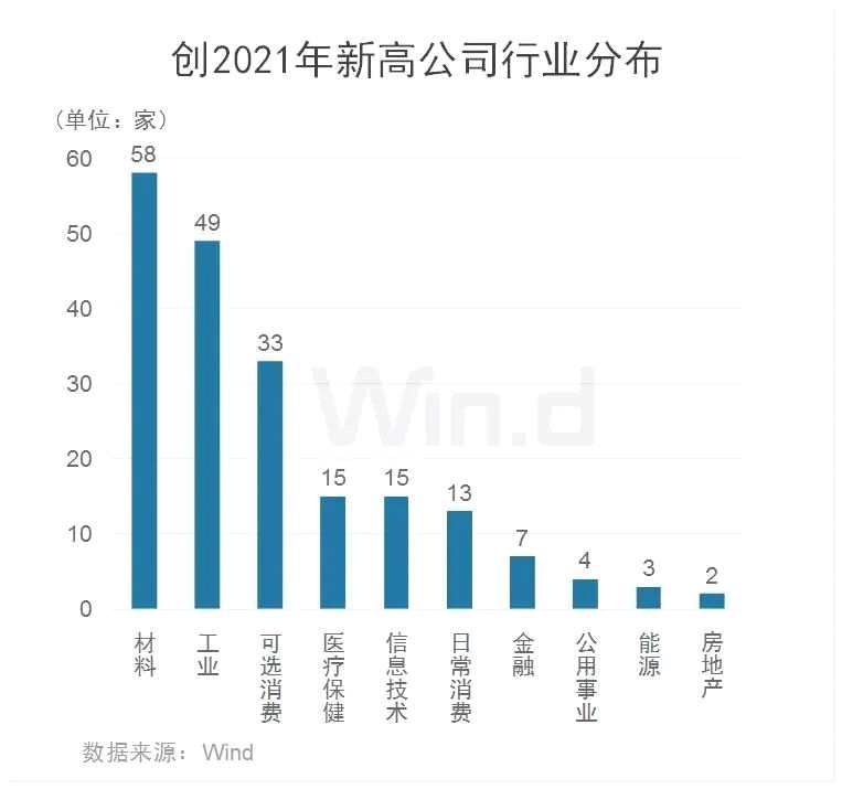 材料和工業(yè)板塊新高公司合計占比近半,可見在創(chuàng)新高公司中行業(yè)之間亦存在明顯的差別。(剔除1月以來上市新股)