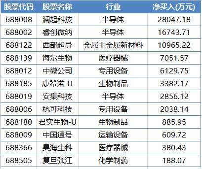 睿創(chuàng)微納也獲得北上資金1.67億元凈買入、西部超導(dǎo)獲得1.1億元凈買入,中微公司、海爾生物、康希諾-U、【杭可科技(688006)、股吧】等也都獲得北上資金超千萬(wàn)元的凈買入。