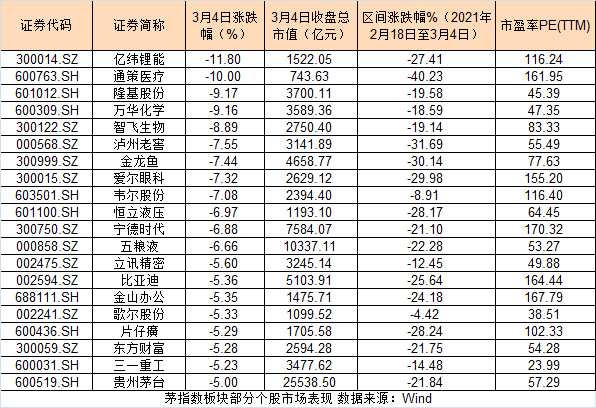 各種“茅”紛紛倒下,“茅”板塊市值蒸發(fā)3.48萬億
