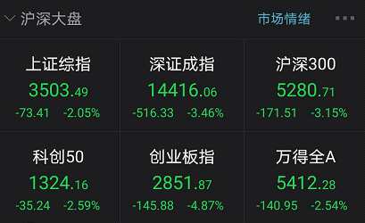 3月4日,A股三大指數(shù)大幅下挫,滬指跌2.05%報3503.49點,深成指跌3.46%報14416.06點,創(chuàng)業(yè)板指跌4.87%報2851.87點。白酒、醫(yī)療、多晶硅、生物疫苗、化工原料等板塊跌幅居前,石油、鋼鐵、煤炭的、電力等板塊則逆市上漲。