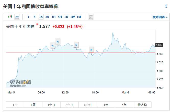 美債10年期國債收益率大漲,最多時再度攀升至1.61%以上。該指數(shù)在2月26日瘋漲之后,再度來到前期高位。國際投行高盛上周四公布的最新預(yù)估顯示,由于經(jīng)濟好轉(zhuǎn),美國十年期國債收益率在今年年底或升至最高1.90%。高盛還預(yù)計,德國10年期國債收益率到年底將升至0%,英國10年期國債收益率將從當前的約0.733%升至1.10%,日本10年期國債收益率料也從當前的0.136%升至0.3%。
