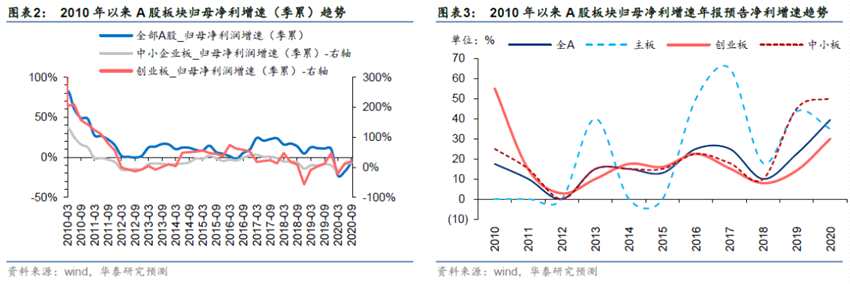 ?、?板塊趨勢(shì):中小創(chuàng)與主板盈利增速差,由走闊到收窄