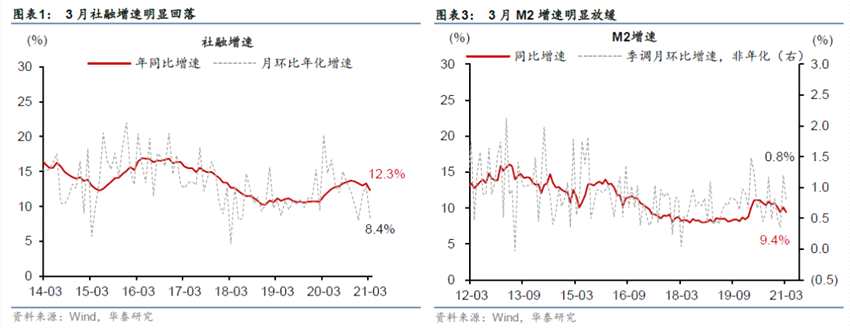 3月新增社融低于預(yù)期,主要由于“非標(biāo)”資產(chǎn)余額環(huán)比明顯下滑,同時(shí)企業(yè)債、政府債凈融資同比下降,顯示政策“正常化”過程中監(jiān)管邊際收緊、及信用加速“分層”的影響。往前看,短期周期動(dòng)能有望保持強(qiáng)勢(shì),貸款需求暫時(shí)無虞,但我們將繼續(xù)關(guān)注監(jiān)管政策“正常化”過程中新增非標(biāo)及直接融資下降對(duì)社融增速的可能影響。