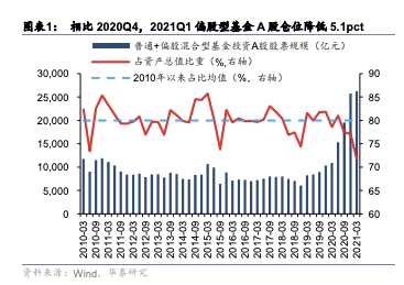 2021Q1:主動(dòng)偏股基金配置股票倉位上升,其中 A 股倉位下滑