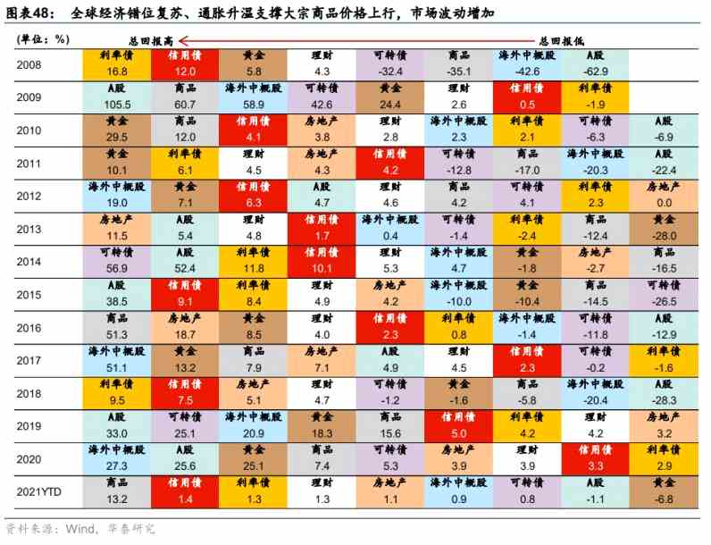 細(xì)分行業(yè)中,建議布局上游原材料中的煤炭、銅、鋁、鋰;中游原材料中的化纖、MDI、鈦白粉、煤化工、農(nóng)藥、鋼鐵,石膏板、玻璃,水電,建筑中的專業(yè)工程;中游工業(yè)品中的新能源汽車鏈、工程機(jī)械,軍用集成電路、造紙、航空;下游消費(fèi)品中的動(dòng)物疫苗、白酒、啤酒、白電;TMT中的被動(dòng)元件、視頻網(wǎng)站、智能汽車鏈;金融地產(chǎn)中的銀行。