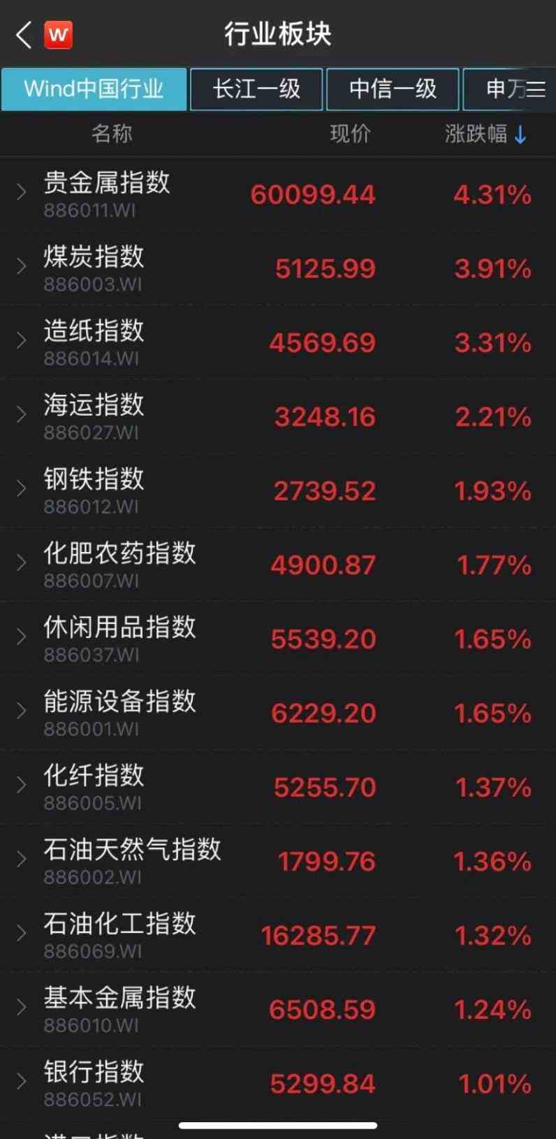 反應(yīng)到A股上,上周五,順周期股票集體走強(qiáng),資源股領(lǐng)漲兩市,貴金屬、煤炭、造紙、鋼鐵、基本金屬等行業(yè)漲幅靠前。