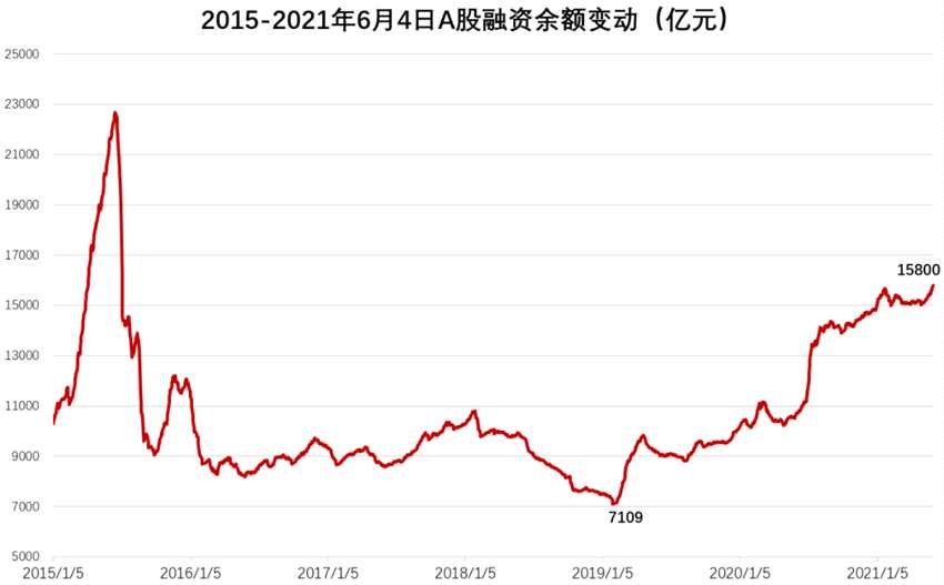 自5月25日A股大漲以來(lái),市場(chǎng)資金再度活躍,作為市場(chǎng)重要力量之一的杠桿資金正在加速入場(chǎng),融資余額已連續(xù)7個(gè)交易日保持凈買入,據(jù)Wind數(shù)據(jù)顯示,截至2021年6月3日,融資余額已超過(guò)15800億元,相比5月初凈增長(zhǎng)了689億元,更是創(chuàng)下近6年以來(lái)的新高。