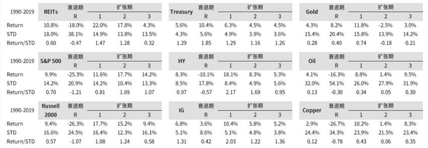 經(jīng)濟周期:REITs的波動率在衰退期顯著提升,擴張初期和中期配置REITs性價比高